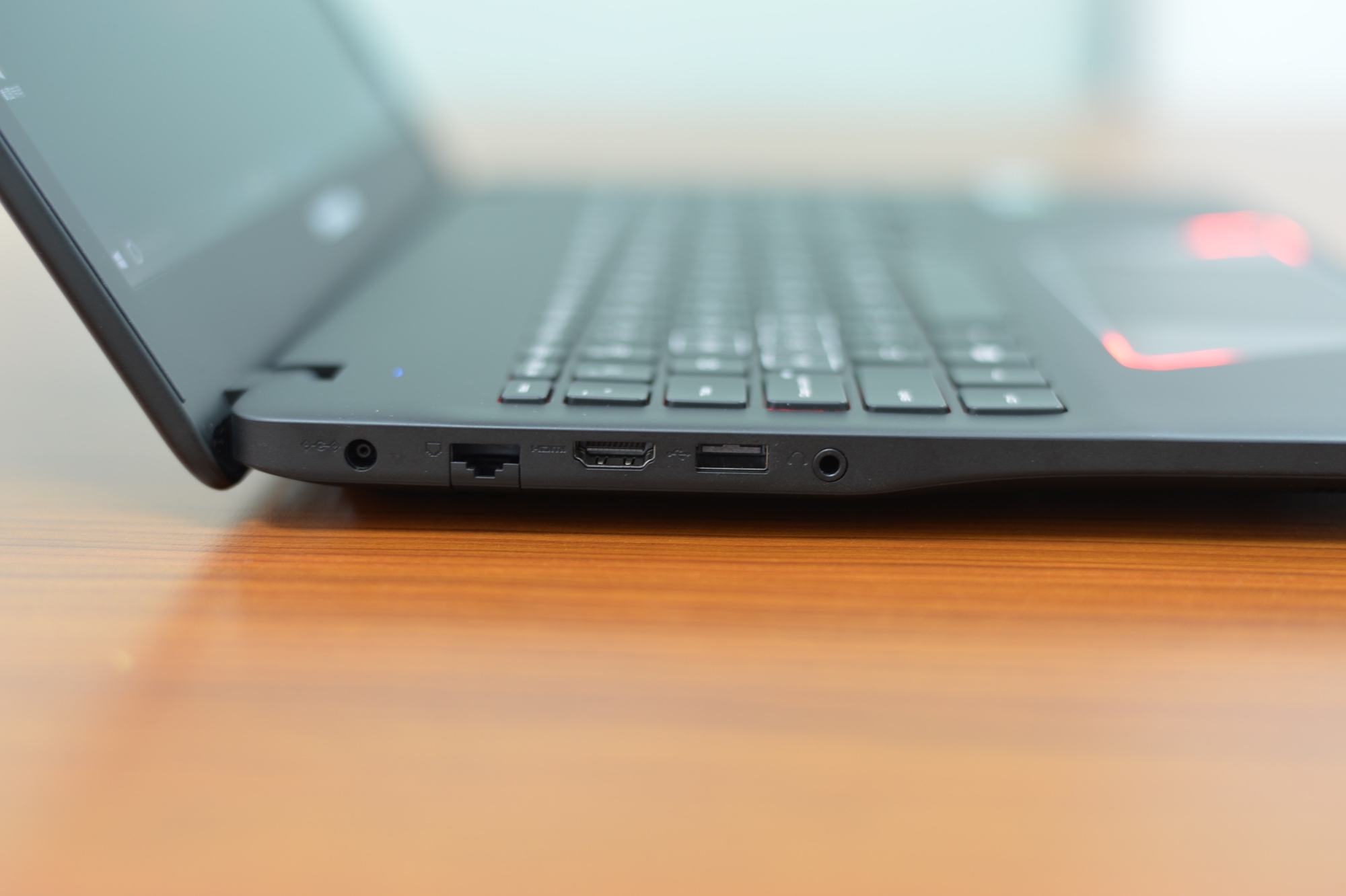 另外则是外接能力而言,游戏本来说接口一定要大而全,三星玄龙骑士左侧设计了1个HDMI接口、1个USB3.0接口、1个RJ-45网口、1个音频输入输出接口以及电源接口。机身右侧设计有2个USB2.0接口、1个SD卡槽和1个安全锁孔。接口基本算齐全,但只有一个1个USB3.0略微遗憾。