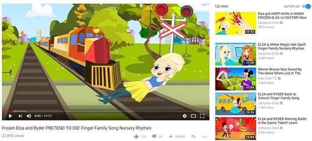 相信很多人都看过类似的截图了。就这样,原本最适合儿童的动画片,变成了披着羊皮的狼,尽管这只“狼”不会吃人,但却可能会慢慢腐蚀掉孩子们的心灵。