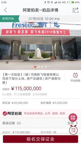 我们从阿里拍卖平台得知,新飞全系品牌——新飞电器、新飞家电、新飞制冷器具三家公司的全部股权将于2018年6月28日10时-29日10时(延时除外)于河南省新乡市中级人民法院淘宝网司法拍卖网络平台上进行公开拍卖活动,起拍价为4.5亿元。