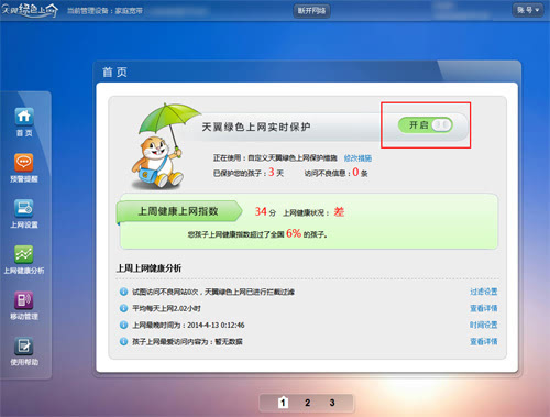 绿色上网是中国电信等宽带运营商针对有孩子的家庭宽带用户提供的互联网内容过滤服务。使用“绿色上网”业务家长可以限制孩子的上网浏览范围和上网时间,防止孩子接触到互联网上的各种有害信息。绿色上网无需在用户端做任何修改、设置或安装软件,而是在电信骨干网上对有害网站作出拦截和过滤,其系统的数据库还每天更新,自动搜索并屏蔽新增加的不健康网站。