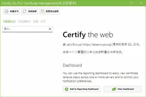 上网研究了一下,发现其实IIS可以实现很简单的部署SSL证书,有一个免费的SSL证书服务叫Let's Encrypt,提供三个月期限的SSL证书,还有一个名为Certify的软件,可以在GUI的图形界面下自动申请和配置Let's Encrypt颁发的SSL证书,使用它可以自动配置、创建和自动续订证书,并且到快要续订的时候会自动发邮件通知我们,非常方便,我下载安装好Certify之后,几步操作,不到2分钟时间,SSL证书就部署成功了,速度快的让我都感到很震惊。
