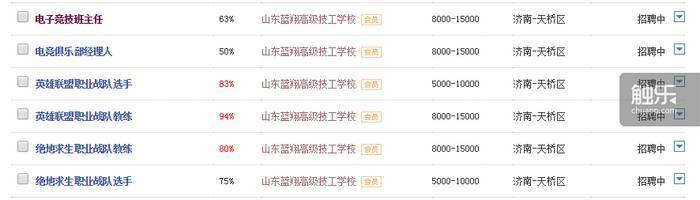 蓝翔官网招聘链接跳转某招聘网站上的有关电竞的职位