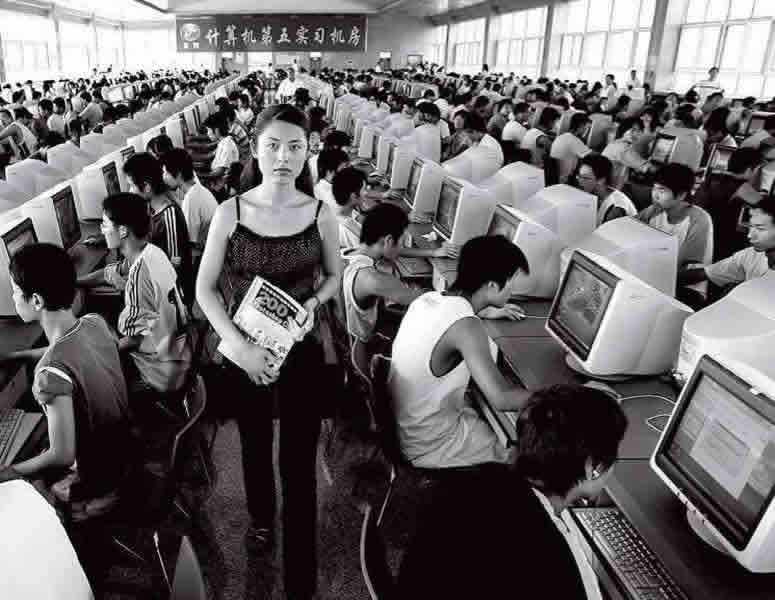 王老师带我离开食堂。午餐时间已经接近结束,组成人墙的学生们在一名领头者面前排了一个长队。在领头人的带领下,他们开始喊号子。王老师走过长队,带着我径直离开。在我身后,十来名学生开始喊:“一、二、三、四!”