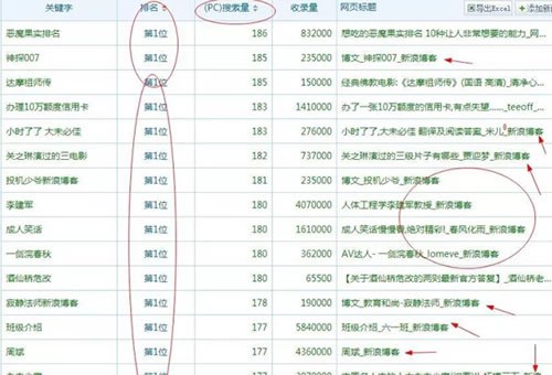 看下面的图,你就明白了。这么多拥有搜索量的词,新浪博客都是排第一的。