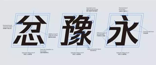 这些特征并没有被运用在所有笔画中,但正是这些细节,使得这套字体多了一些个性。