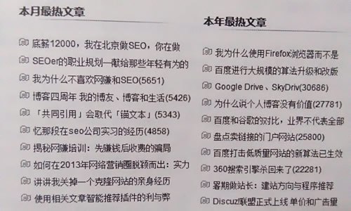 每个CMS 系统都有热门文章点击插件,我们可以把大多数文章按月、按年、按栏目、按评论量统一列出来,如下图部分截图举例: