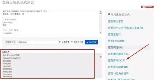 最后,这是最关键的一步,直接Ctrl A全选复制这些QQ成员信息,粘贴到“在线正则表达式测试”页面中,这样的在线正则表达式页面有很多,大家直接百度搜索就可以了,这里就不推荐了。如下图: