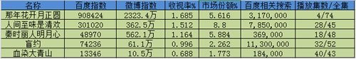 从数据我们可以看出《那年花开月正圆》将会是热点,如果剧情好的话,将会热点很长一段时间,而《血染大青山》这样的电视剧做的价值就不高。《人间至味是清欢》也正处于热门期。