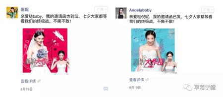 想象一下,当你想向朋友推荐一部电影时,你会像上图中那样写吗?当然不会呀,这么官方,一看就是广告。下图中,用主演明星的微信,发布类似个人状态的广告,显然更符合用户刷朋友圈时的情感预期。