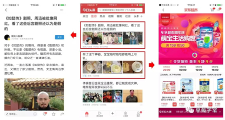 比如,微博、头条等信息流产品中,以和普通信息同样的图文形式发布原生广告,出了备注的「广告」字样外,形式上和普通信息基本没有差异。