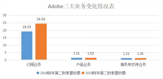 按业务部门划分,Adobe的业务可分为订阅业务、产品业务、服务和支持业务三部分。对此,作者将分别展示其成绩。