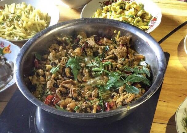 第二顿,是我们去榕江县宰荡村加所寨,那里有动听而又唯美的侗族大歌,热情而又淳朴的侗族村民和孩童。听完歌,村民用牛瘪火锅来招待我们,还说这是听说我们要来,专门为我们准备的,锅里咕嘟嘟的煮着,那股味道又窜上来了,村民还告诉我们说,这些新鲜的牛瘪,味道更纯粹,锅里面主要是牛肉,也是加了不少调料在里面,但是依然无法掩盖那股窜鼻的味道。同行的一位朋友超喜欢这一口儿,还说这个牛瘪火锅的确比之前吃的那个要新鲜的多。不过这样的美味,我真是无福消受了。