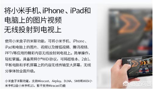 无线投屏只需要下载一个小米投屏神器,就可以将手机里面的内容以电视屏幕的形式展现出来,比如在商务会议、家人朋友聚会时,还一群人挤在手机屏前看照片。通过“米联”能够将小米手机或iPhone、iPad上的图片、视频、音乐一键投放在电视上。还能让将小米手机变身超炫电视遥控器。解放你被小屏关押的手机视觉!还可以通过手机给盒子安装一些应用,非常方便。