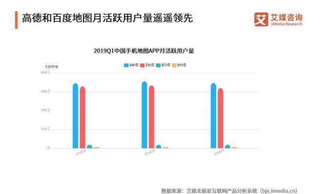 数据显示,2019年第一季度,手机地图头部APP高德地图和百度地图月活用户数量均超过3亿,分别为3.46亿人、3.19亿人,双寡头格局稳定。