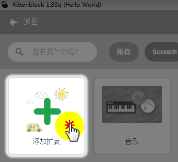 双击打开Kittenblock,左下角加载插件,按下图操作