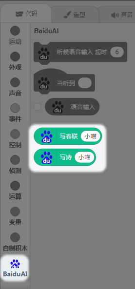 最近Kittenblock又加了一个百度大脑的写诗和写对联功能