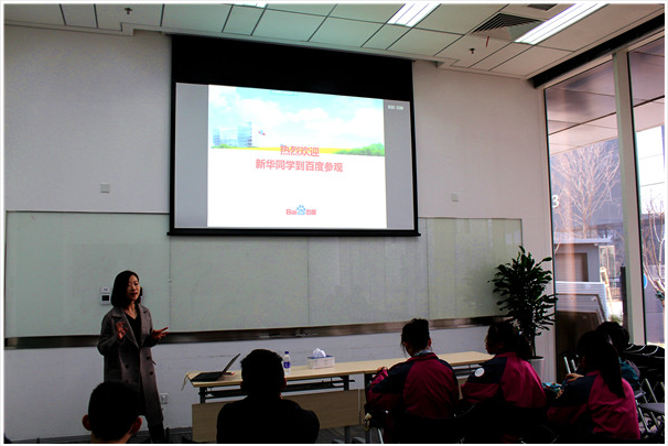 在参观过程中首先介绍的是NLP部门的全职员工——AI机器人“小度同学”,“小度同学”的主要工作内容是为大家提供地图导航、信息查询等全方位多样化的服务。通过与“小度同学”进行问答互动,了解到百度在AI领域的最新研究近况。同时,引人注目的减压滑梯、攀岩墙、楼顶的中国最长露天跑道,可同时容纳2000人的豪华食堂等,都引起了强烈兴趣,彰显了百度的人文关怀与对科技的高度重视。