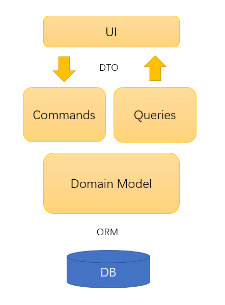 我们平常最熟悉的就是三层架构,通常都是通过数据访问层来修改或者查询数据,一般修改和查询使用的是相同的实体。然后通过业务层来处理业务逻辑,将处理结果封装成DTO对象返回给控制层,再通过前端渲染。反之亦然。