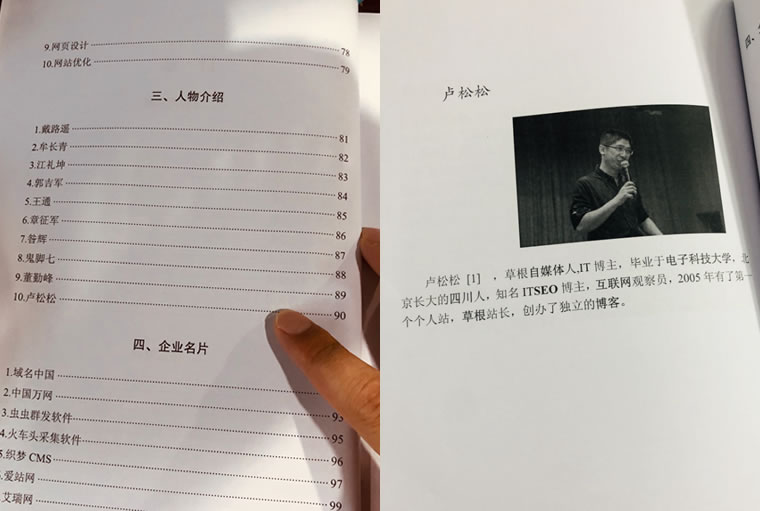 这本书介绍了如何做网站、如何优化、并介绍了前10年站长圈比较知名的10位草根站长(包括卢松松o(* ̄︶ ̄*)o),也介绍了站长圈常用的软件和公司,涵盖面很广。