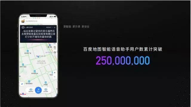 谷歌地图将谷歌助理整合,但百度早在 2017 年就结合AI和语音、语义技术,实现了语音交互覆盖用户操控全流程,2018 年正式确定了"新一代人工智能地图"的定位,强化更准确、更丰富、更易用三大特点。在 GMIC 上,李莹宣布,百度地图智能语音助手用户数累计突破 2.5 亿,一年增长 1.5 倍,智能语音交互+地图服务已成为百度地图的杀手级功能。