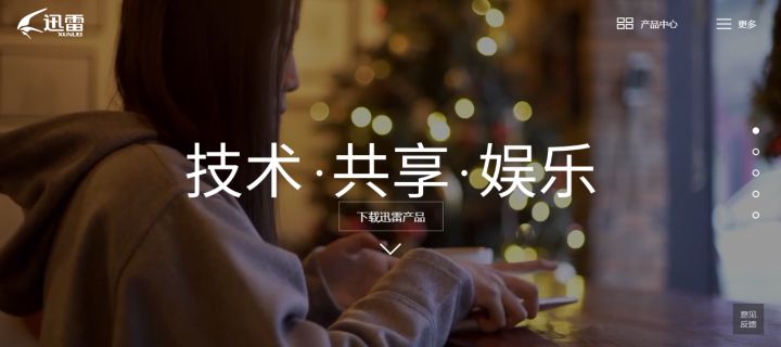 但是要大家要注意,迅雷官宣网是设计是现在非常流行一种分屏滑动特效技术。上面只是我们看到第一屏网页效果