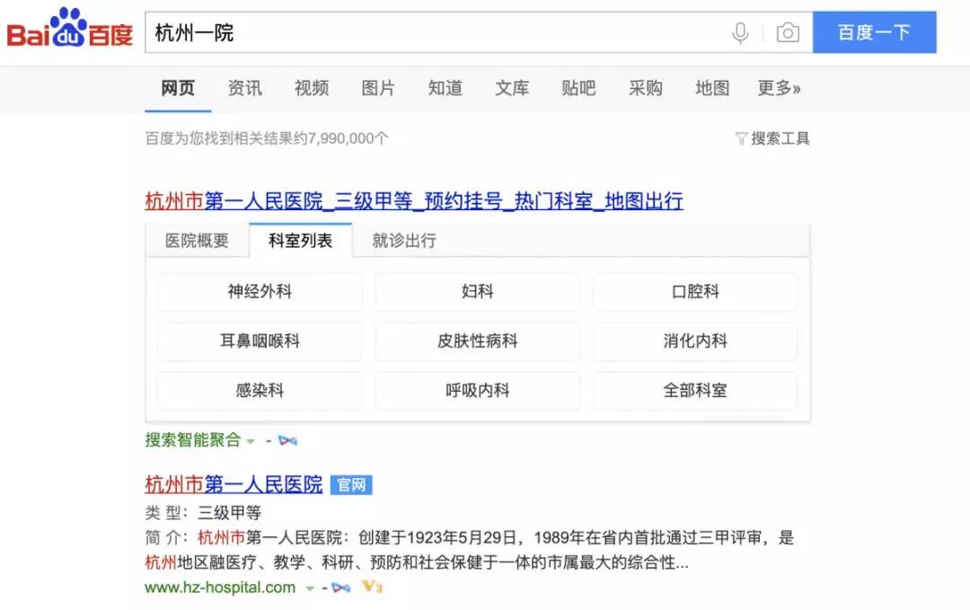 在更细分的医疗领域,百度对公立医院的各种简称、别称、俗称进行了关键词保护。比如“中国人民解放军总医院”通常会简称为“301医院”、“滨海医院”,在天津、烟台、盐城、台州等多个城市均有同名山寨医院,外地人常常傻傻分不清楚,这便给不法分子留下了可趁之机。