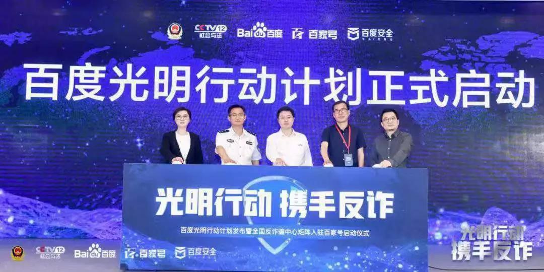 在国务院联席办指导下,百度发布了“光明行动计划”。该计划依托百度领先的人工智能黑科技技术与“搜索+信息流”双引擎生态,协同公安部全流程无死角监控追踪网络黑灰产,为政府部门与广大人民群众提供硬核反诈骗防骗攻略,精准打击电信网络诈骗犯罪。