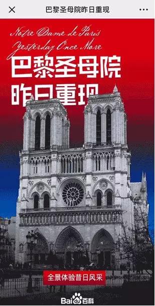 4月16日,巴黎圣母院遭遇火灾,网友刷屏“卡西莫多没有家了”的同时哀叹世界级文化遗产的被毁,去过的游客纷纷表示“当初参观的时候,真应该看得更认真一点”。百度百科博物馆计划小组为了延续这一人类瑰宝,第一时间用全景技术在线上“复原”了巴黎圣母院。