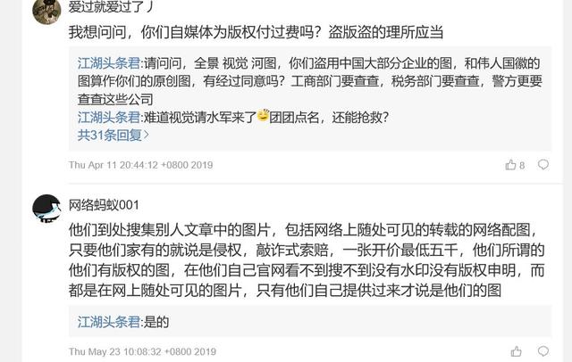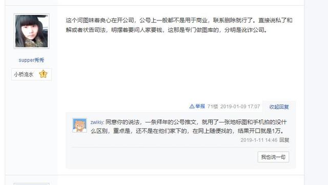 公司四:在被索赔的大量企业中,有很多都是一年前甚至5年前发布的文章,而且所有企业都表示绝对没有从河图公司的网站上下载过图片,由此我们推测,这些所谓的版权图片是否被有意散播到各种公共平台上供不知情的人免费使用?受害者群里有人说,甚至很多图片本身并不是河图拥有的版权,河图公司找到使用者和版权方后,代理版权方去起诉使用者,以此获得收益(此说法没有完整取证)