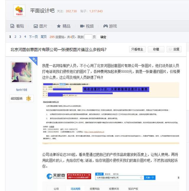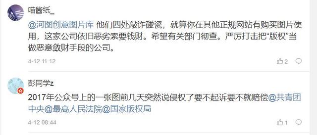 A萌大咖;比视觉中国更可恶的是北京河图创意,先将不带水印没有任何版权提示的普通图片弄到网上 散发出去,等大家使用了就开始收网 索取天价版权保护费 不给钱就起诉! 这不是个例,半年法律诉讼已有上百起并且基本胜诉,在河图维权群中还有几百家企业机构收到了律师函。网络敲诈升级,钓鱼碰瓷,百度可查!