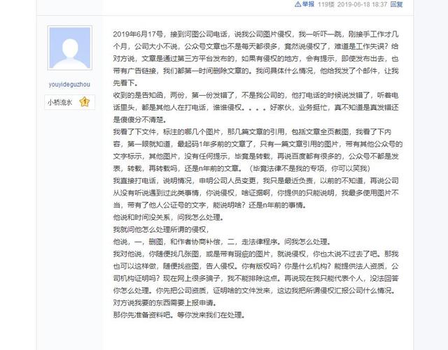 故事是这样开始的:今年最近三个月,9-11月数百家公司收到北京河图创意图片公司电话和邮件,被告知在网上使用了侵权图片。众公司在一脸懵逼地情况下,首先对河图公司进行致歉,并将自己使用的网络图片进行删除,并表示企业内部使用 ,并表示没有利用图片进行盈利, 浏览量几十到一两百,没有对其公司造成经济损失和其他影响。
