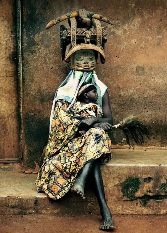 面具之外,高级巫师要有一件漂亮的法衣。法衣的布料也必须由手工纺织,绣工及装饰极尽夸张,越夸张的法衣,就越能得到自然之神的高看。法衣上的图案通常是部落的保护神或几何花纹,在非洲,几何花纹象征着由人获得的自然力量。