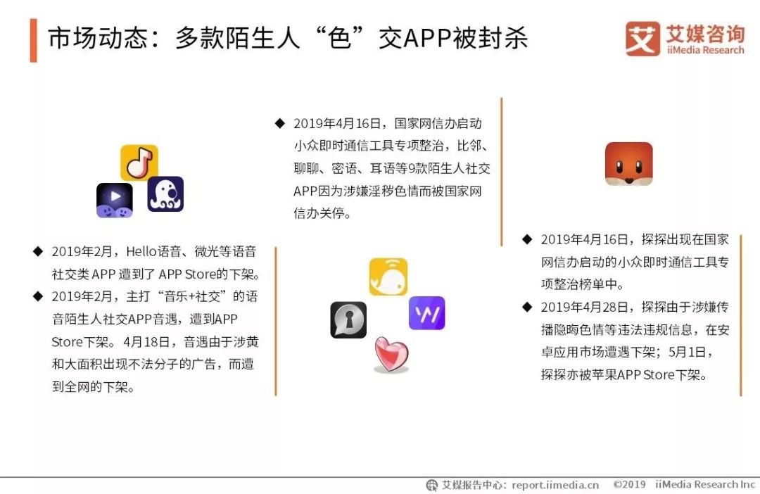 艾媒咨询总结的陌生人社交产品关停下架情况 图源:艾媒报告中心