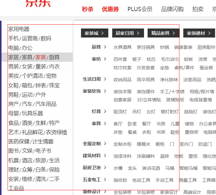 其实前端目录其实就是个空壳子,我们只是给它起了个名字,后端类目才是背后的老板,后端类目将自己的商品信息集合映射到前端,这样前端就有了我们在网站上看到的目录的样子,还是这张图所示:这就是前端类目的样子。