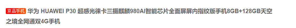 那么我们来看下华为在京东的旗舰店是怎么命名的。(事先声明,上面的绝对不是照抄京东的,我在截图之前就没有正经看过京东华为p30的标题)