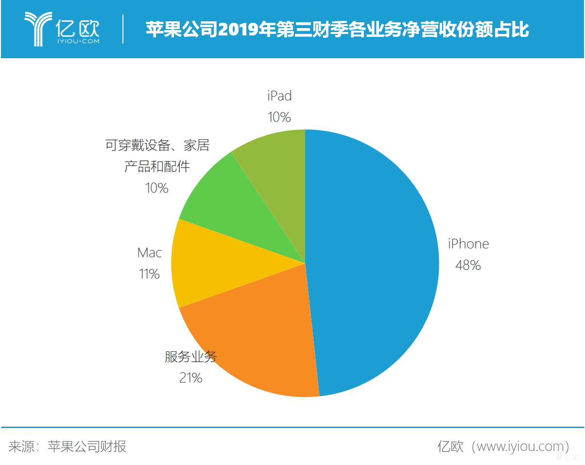 详细来看此次苹果公司2019财年第三财季的财报,我们可以将其划分为三个部分:即苹果产品业务线的收入情况、地区性的营收状况和财报电话会议亮点。