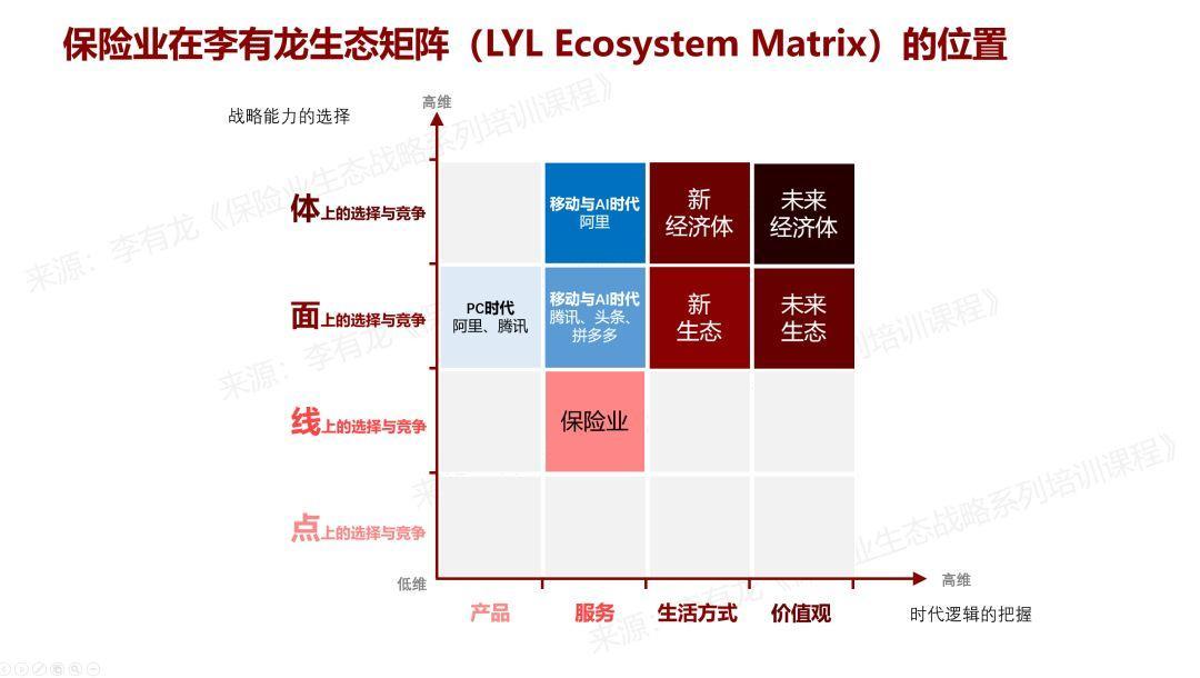 图01:保险在生态矩阵的位置,来源:李有龙《保险业生态战略系列培训课程》