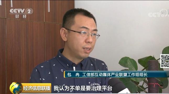 工信部互动媒体产业联盟数字文化工作组组长 包冉:对于整个产业链都要治理。通过批量生产制造所谓的网络红人,然后来进行所谓的很多的内容导流,我认为不单是要治理平台,还要出重拳治理。