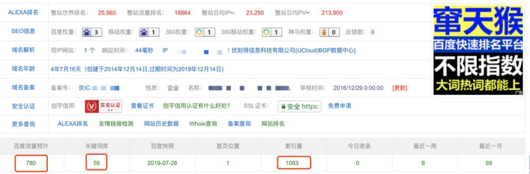 权重分析:权重越高,网站质量越好,收录量越多,关键词词库越多,百度流量预估越高,每日获得的流量越多,也就正面来到网站的用户越多。