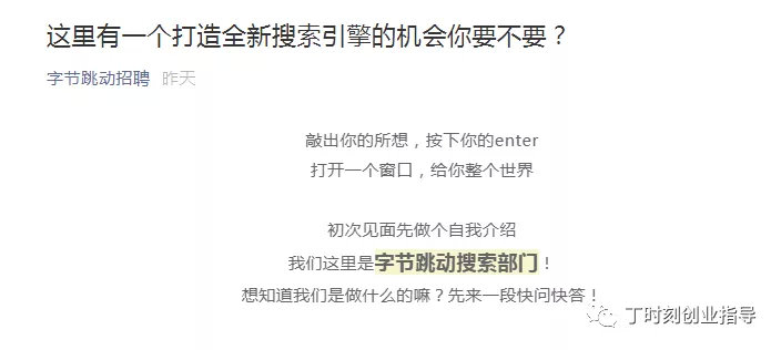7月31日,在字节跳动的招聘启事中显示,字节跳动将从0到1打造一个用户体验更加理想的通用搜索引擎,并且将是全网搜索。字节跳动称,搜索团队覆盖了今日头条、抖音、西瓜、火山、懂车帝等产品,正在全力打造出一个理想的搜索中台架构。