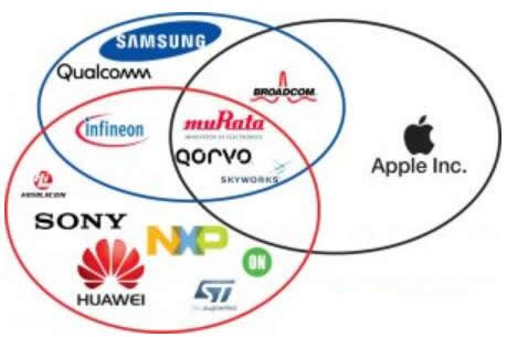 苹果(Apple)智能手机的主要射频前端模组/器件供应商