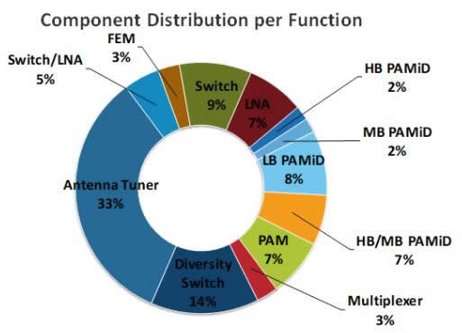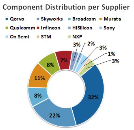 本报告涉及的智能手机射频器件分布情况(按照供应商划分)