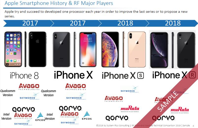 • 2019 vs. 2018 vs. 2017 RFFE Module and Smartphones: Apple, Samsung, Huawei, Xiaomi