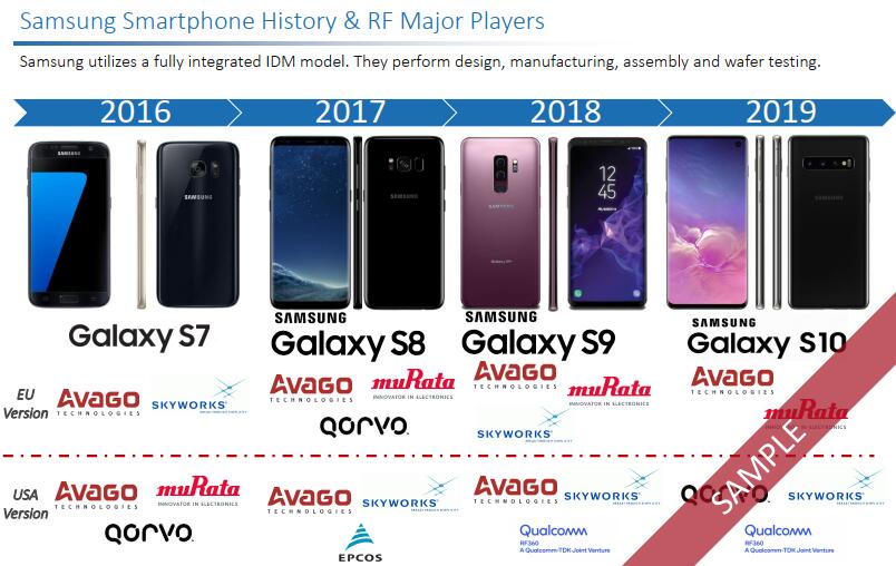 三星(Samsung)智能手机的主要射频前端模组/器件供应商