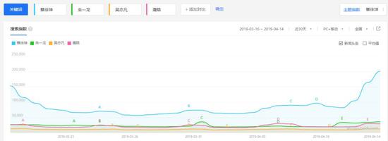 如今,从《偶像练习生》中C位出道的蔡徐坤,无疑成为“顶级流量”的代名词,几乎每条微博的转发量都在100万+。在百度指数中搜索,蔡徐坤比朱一龙、吴亦凡和鹿晗明显高出了不止一个段位。