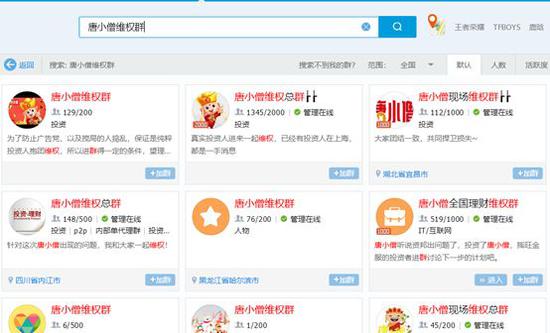 时报君在QQ搜索中输入唐小僧维权群,画面是这样的: