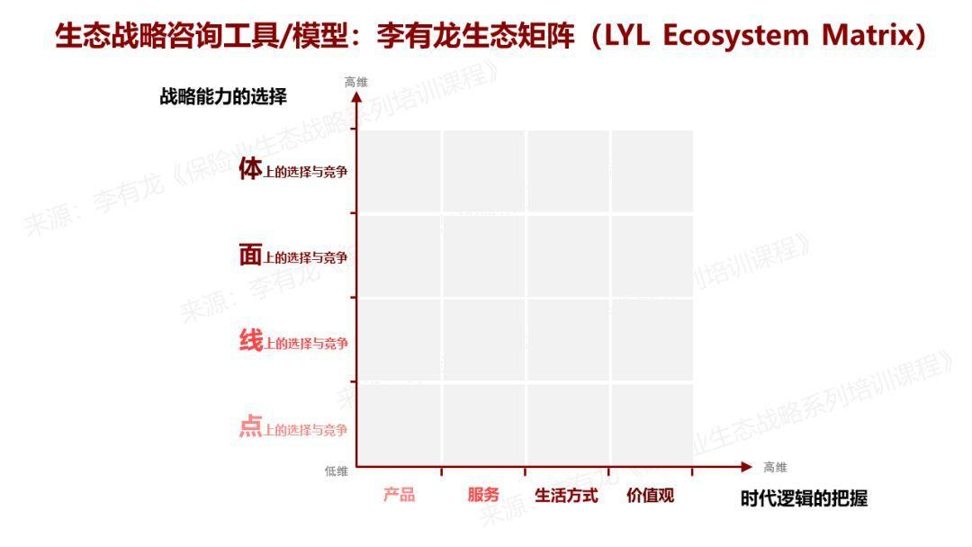 图02:李有龙生态矩阵(LYL Ecosystem Matrix),来源:李有龙《保险业生态战略系列培训课程》