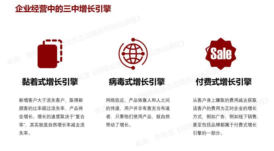 图03:企业经营中的三中增长引擎,来源:李有龙《保险业生态战略系列培训课程》