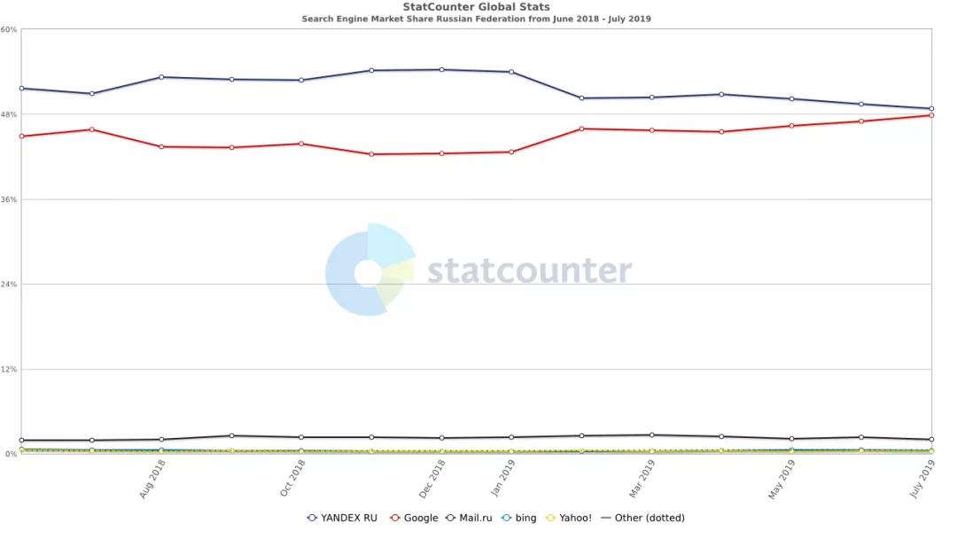 2016年时,谷歌还占据上风,控制着俄罗斯一半以上的搜索市场。