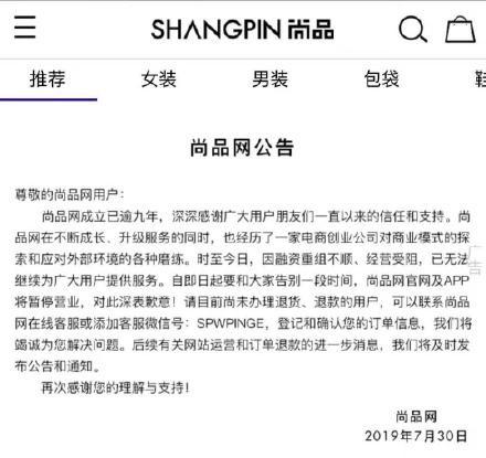 曾扬言,不把某宝、某东放眼里的尚品网,然而现在尚品网却连工资都发不出,谁也没想到,这家“含着金钥匙”出生的公司竟会轰然倒下。和大部分破产的公司不一样,尚品网的停业公告写得非常实诚:没有钱了。